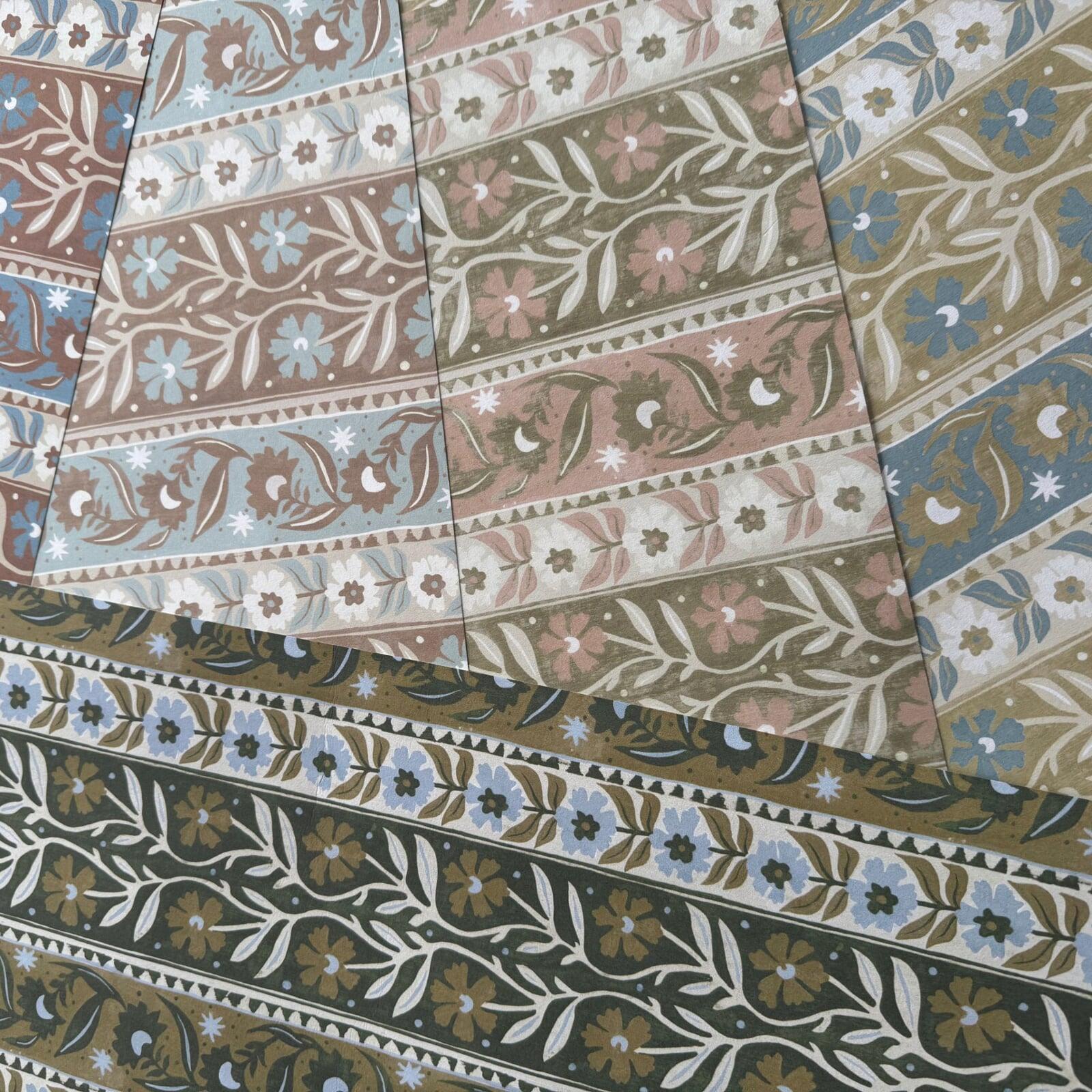 Textile designer Josephine Munsey launched her first designs in 2020 after a series of lockdowns in the UK meant plenty of time in her studio, in Stroud. She has worked for various Design Houses where she learnt about different methods of fabric and wallpaper printing. Josephine felt it was time to begin designing for herself.