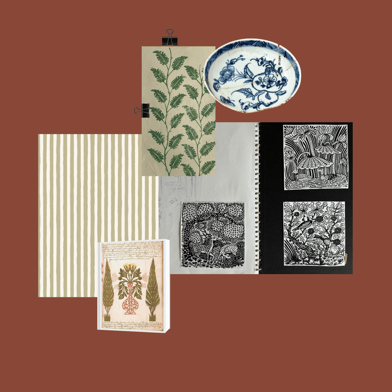 Created in our Cotswold studio, our designs begin as original hand-drawn artworks and are thoughtfully developed into enduring wallpaper and fabric for considered interiors. Produced to order in the UK, this approach allows for exceptional quality, reduced waste and a more responsible way of making.