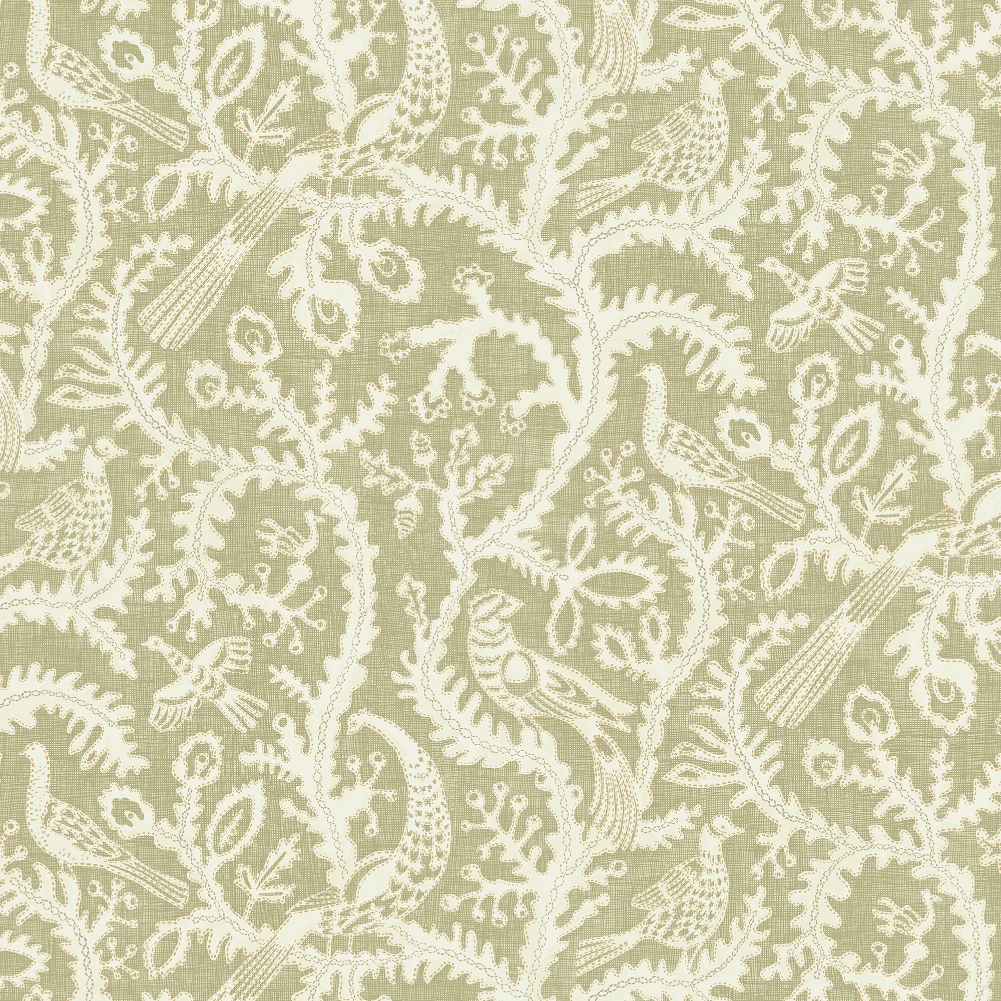 Stitched birds has a beautiful painted linen texture. This pattern offers a modern take on a traditional folk style.
