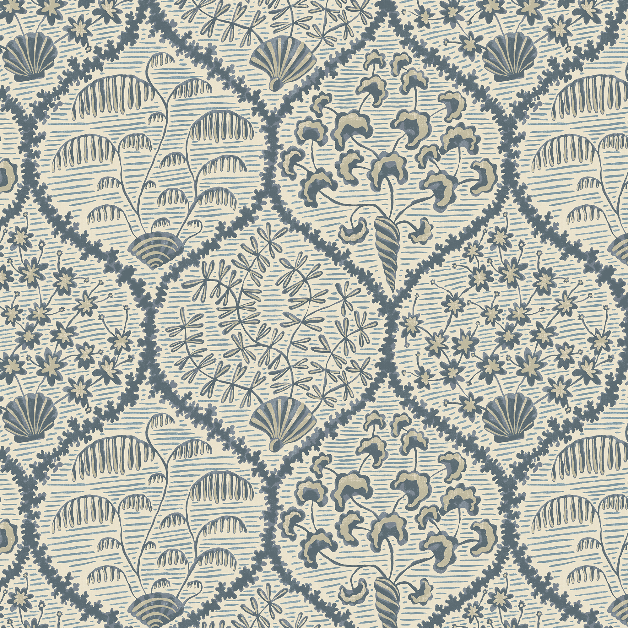 Sowerby Wallpaper - Bude Blue and Salt Ridge