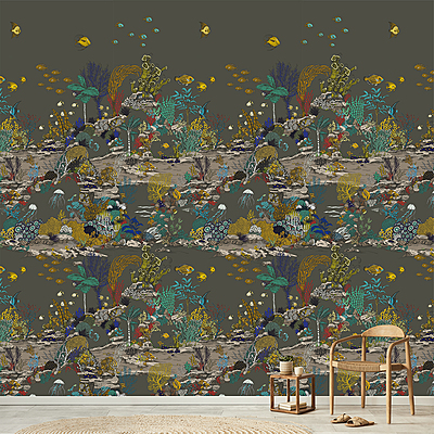 Underwater Jungle Wallpaper - Graphite and Jewel Highlights