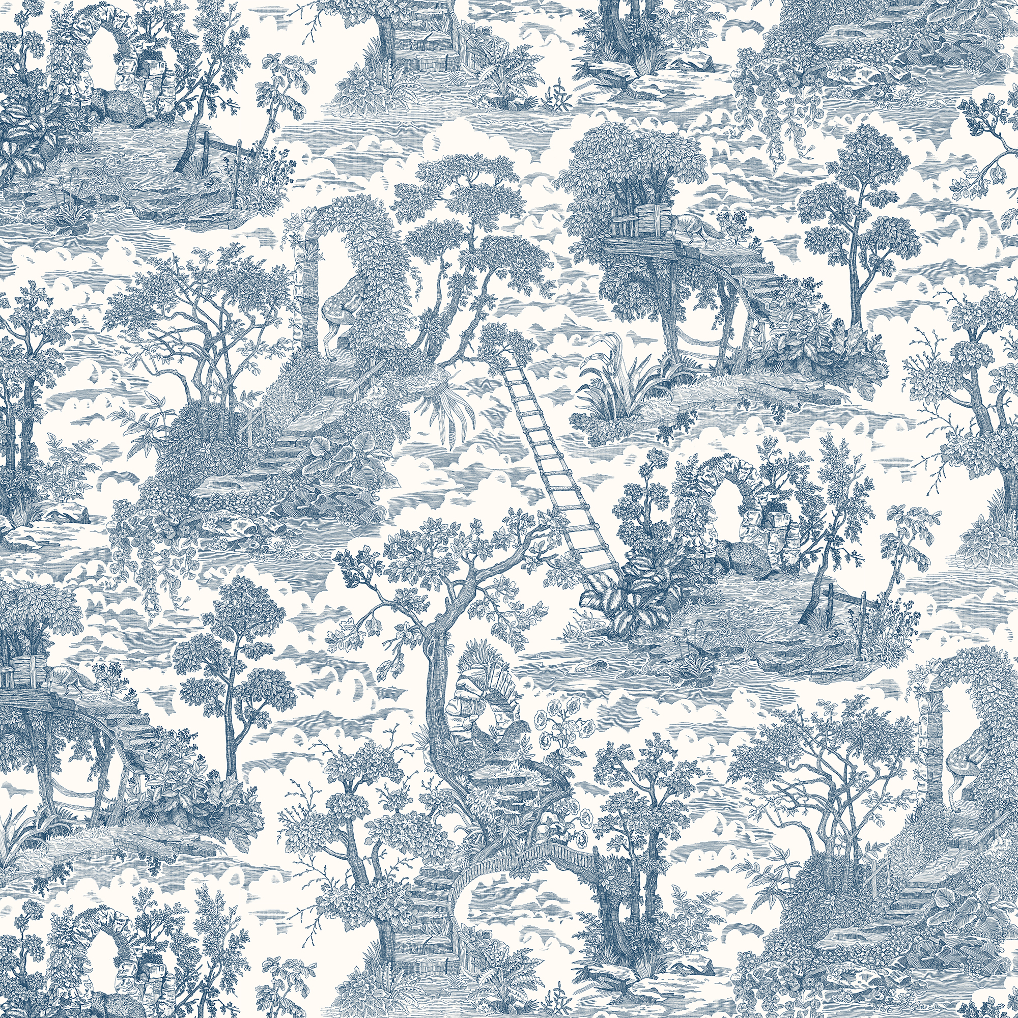 Islet Hoping Toile Wallpaper - Blue
