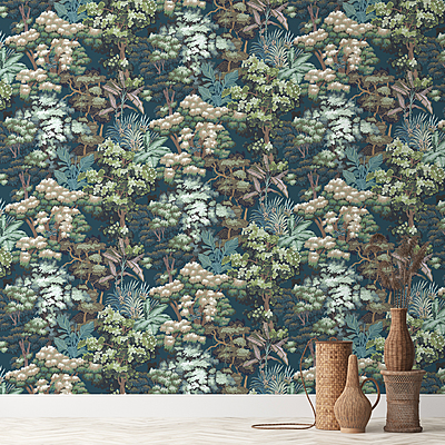 A rich tangle of palms and foliage forms a serene jungle canopy. Painted in a naïve style with a sense of quiet abundance, Canopia captures the stillness and depth of the forest. Printed on a 70cm wide roll and available in three colourways. Printed on a 70cm wide roll and available in three carefully balanced colourways, this design captures the charm of hand-drawn artistry with a refined, timeless finish.