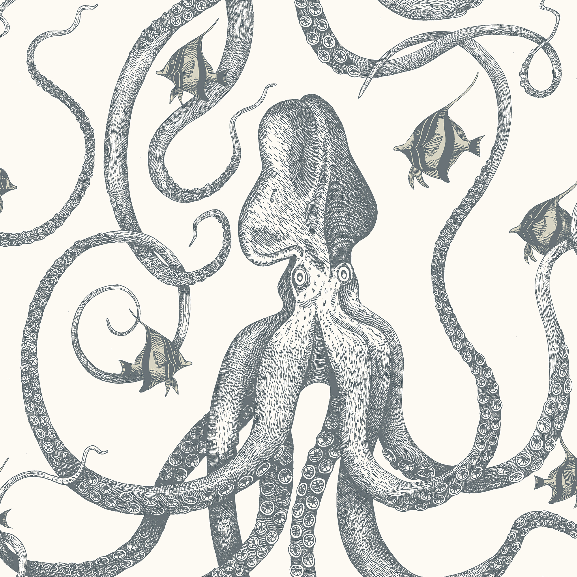 This wallpaper has an unapologetically eye catching design. This eight limbed creature will bring any room to life. Hand drawn with a fine line and meticulously repeated.