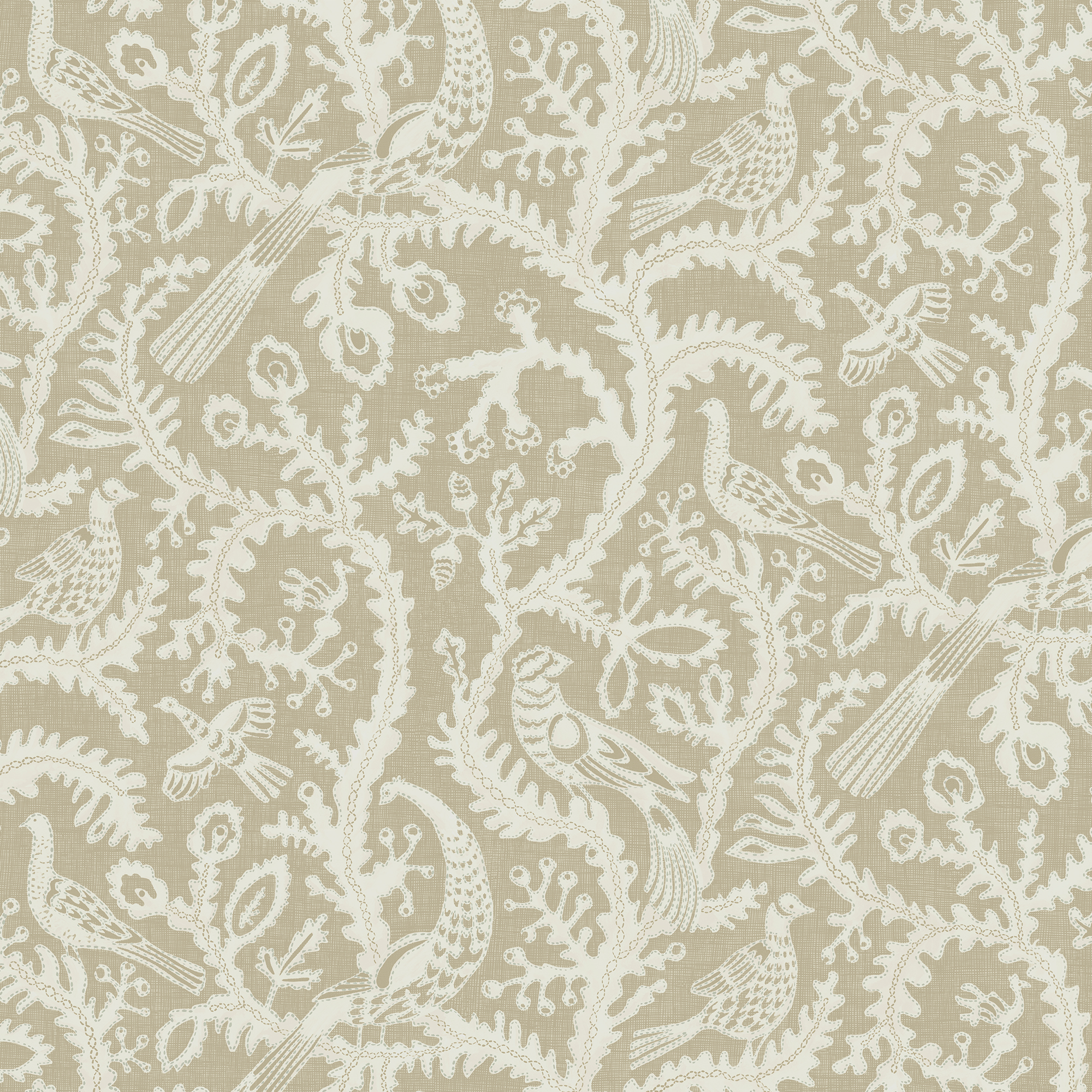 Stitched birds has a beautiful painted linen texture. This pattern offers a modern take on a traditional folk style.