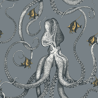This wallpaper has an unapologetically eye catching design. This eight limbed creature will bring any room to life. Hand drawn with a fine line and meticulously repeated.