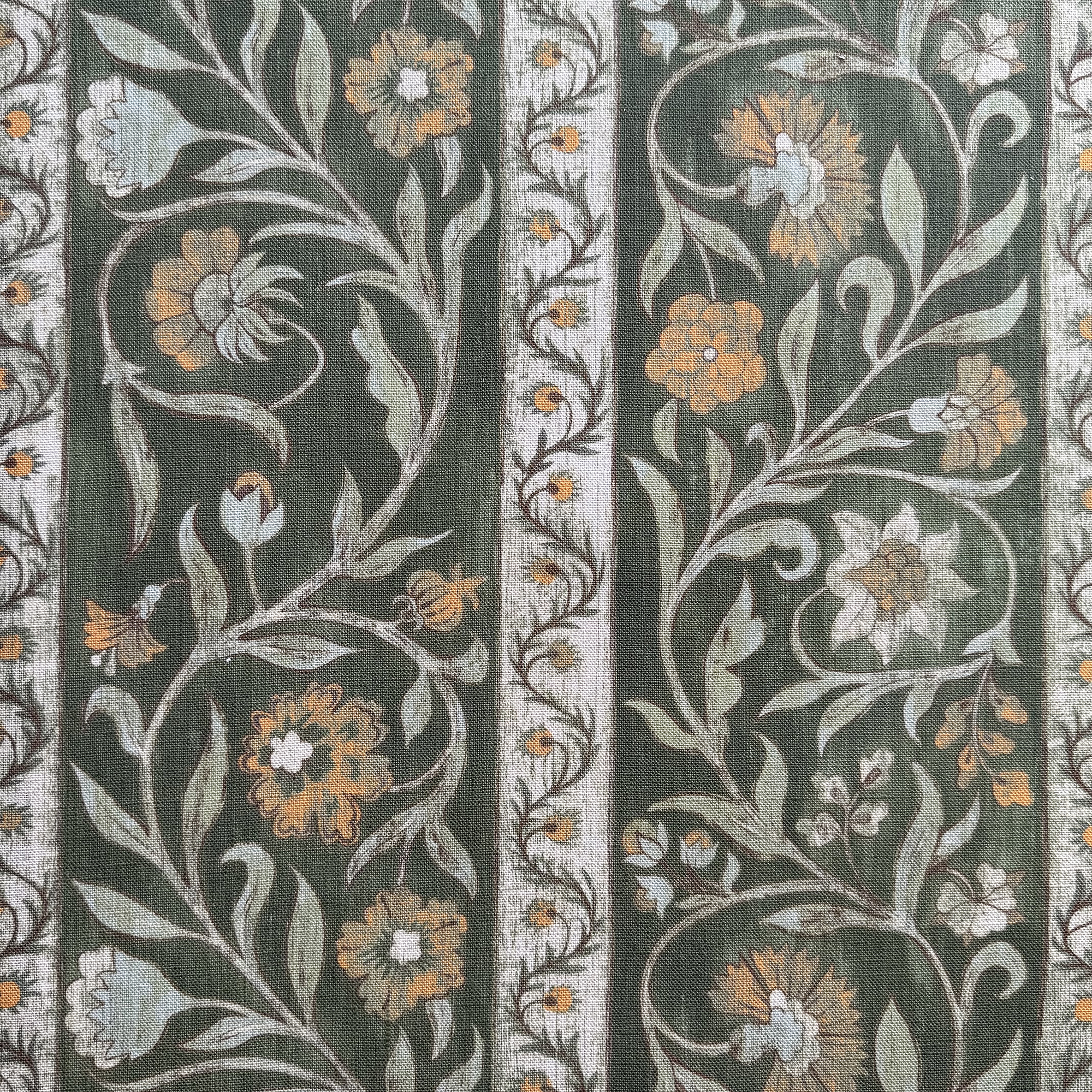 Potter stripe is a floral stripe design inspired by the delicate motifs found on traditional ceramics. Hand-Painted motifs found on traditional ceramics. Hand Painted flowers in structured vertical repeats. Painted onto wood and sanded to give a beautiful texture. Available in five carefully curated coourways.