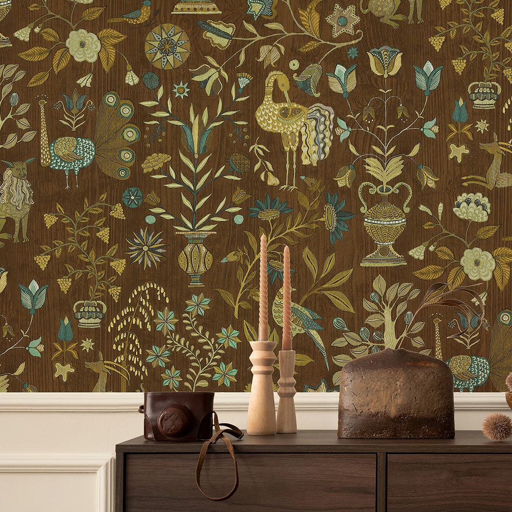 Fable Garden - Brown - Wallpaper