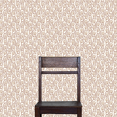 A floral design with delicate stylised columns. A charming small scale design that is a useful pattern for any scheme.