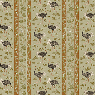 This wonderfully charming print depicts ostrich birds standing amongst grass. Ostrich Stripe has a lovely cross hatched texture and is coloured subtly.