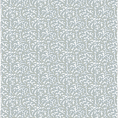 Frond Ogee mimics the shape of an oak leaf and forms an ogee shape. This useful design comes in a wallpaper and a fabric. It is a subtle design that can sit along a very busy print. There is a soft texture within the design that shows the brush strokes used to paint this design.
