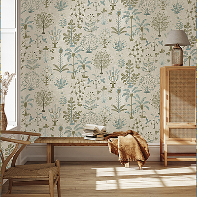 Cynthia Wallpaper - Stone, Light Blue and Olive