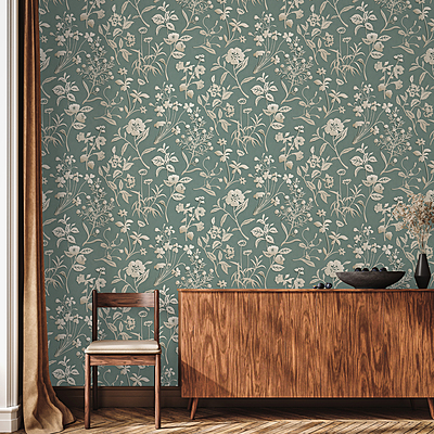 Paper Flora - Aqua - Wallpaper
