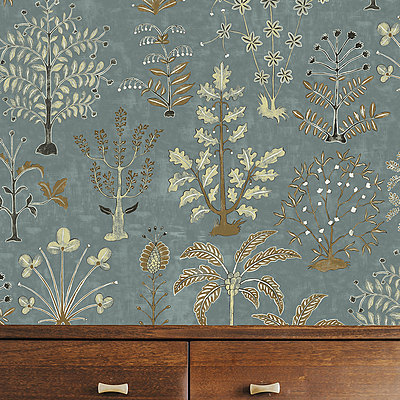 Cynthia Wallpaper - Mid Blue and Olive