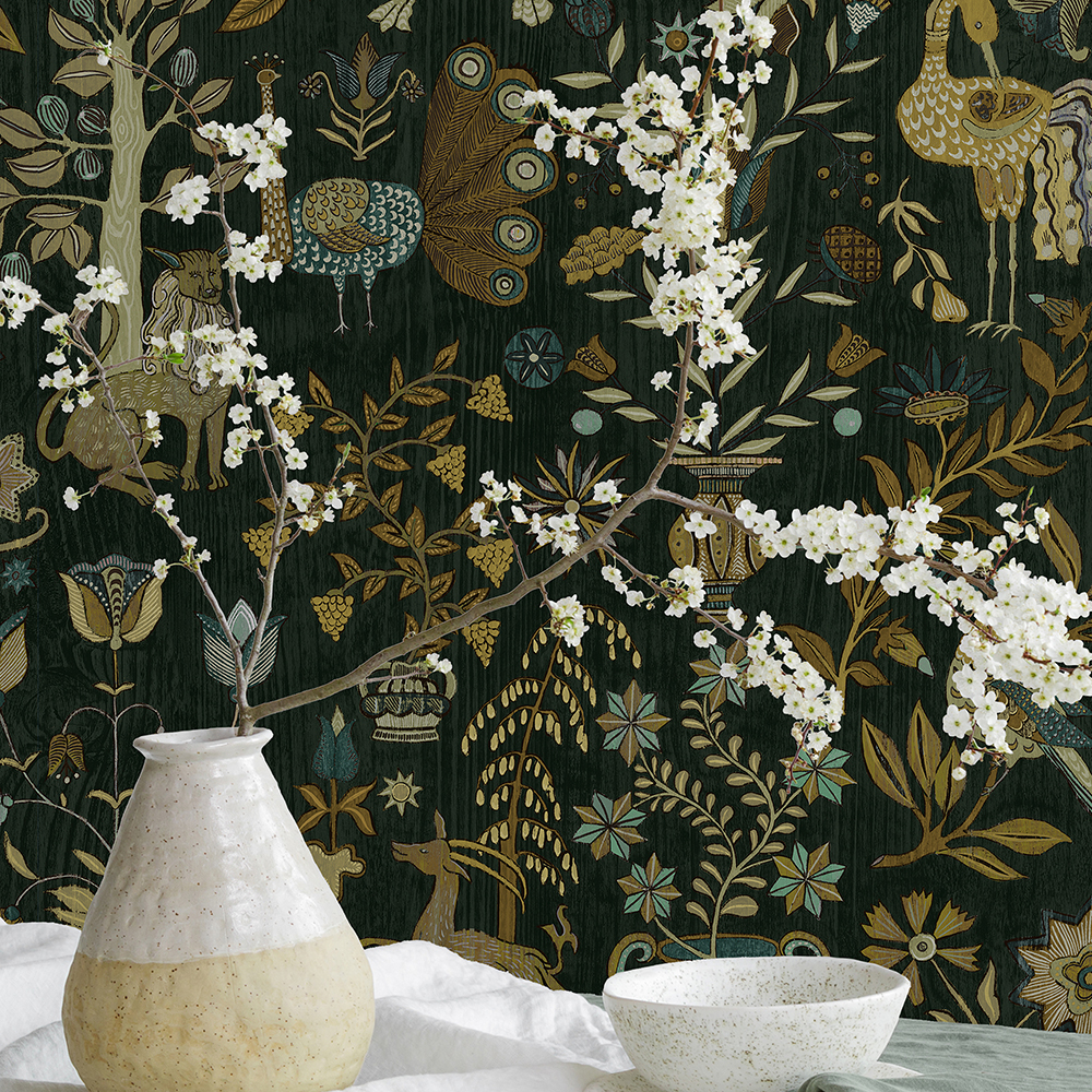 A whimsical folk-inspired design, Fable Garden is hand-painted with stylised flora, playful creatures and a beautiful wood texture. Rich in character, an enchanting wallpaper available in six colourways.