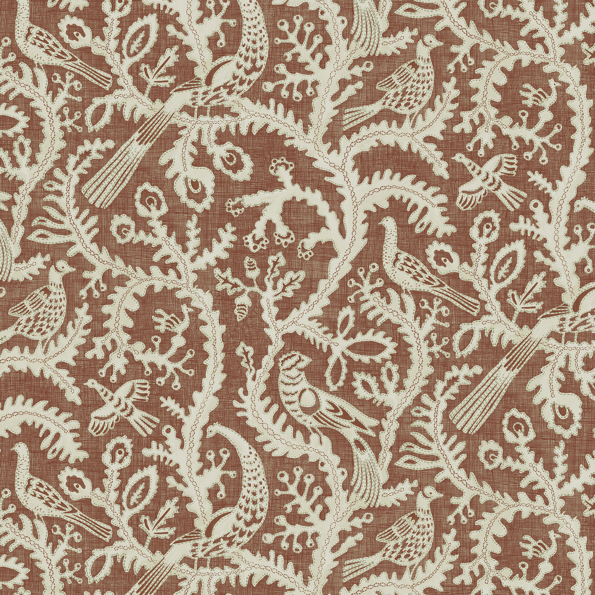 Stitched birds has a beautiful painted linen texture. This pattern offers a modern take on a traditional folk style.