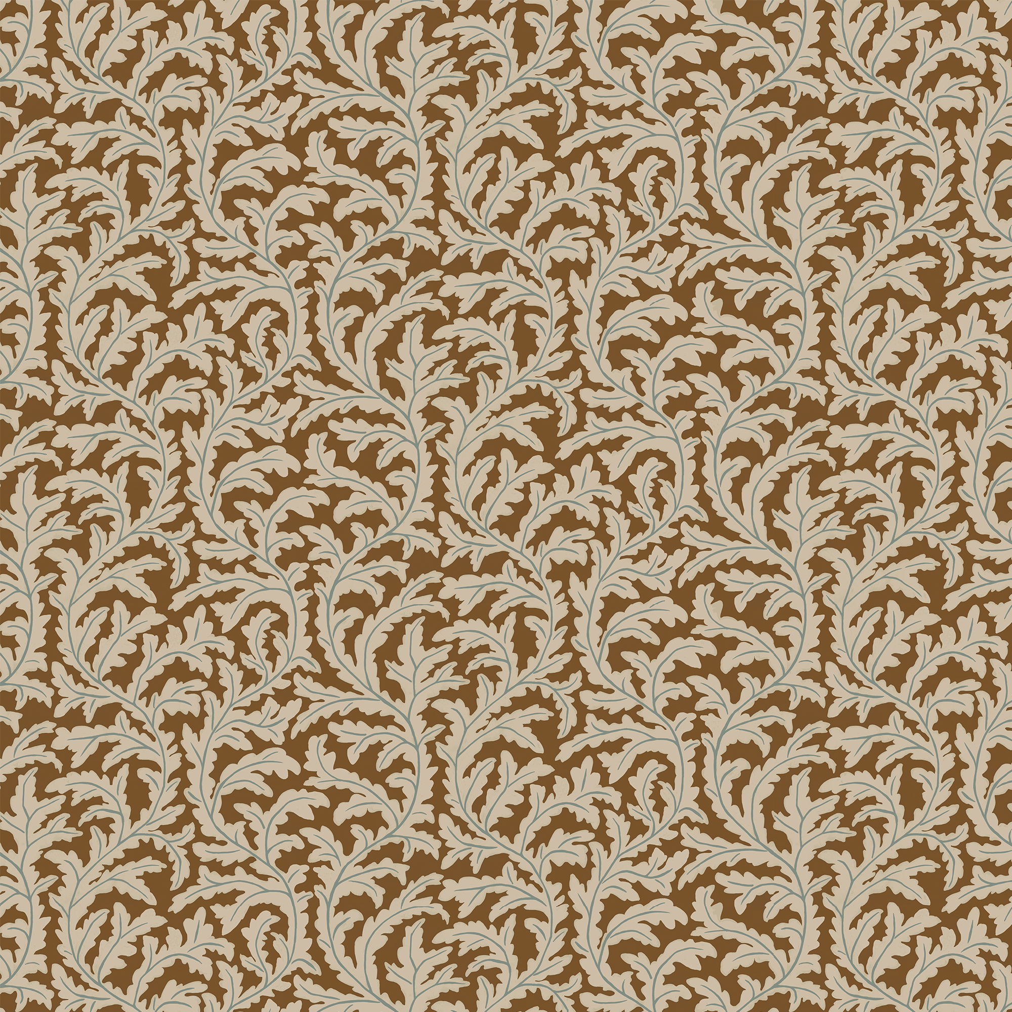 Frond Ogee mimics the shape of an oak leaf and forms an ogee shape. This useful design comes in a wallpaper and a fabric. It is a subtle design that can sit along a very busy print. There is a soft texture within the design that shows the brush strokes used to paint this design.