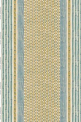 Rita Stripe Heavy Linen Fabric - Yellow and Blue
