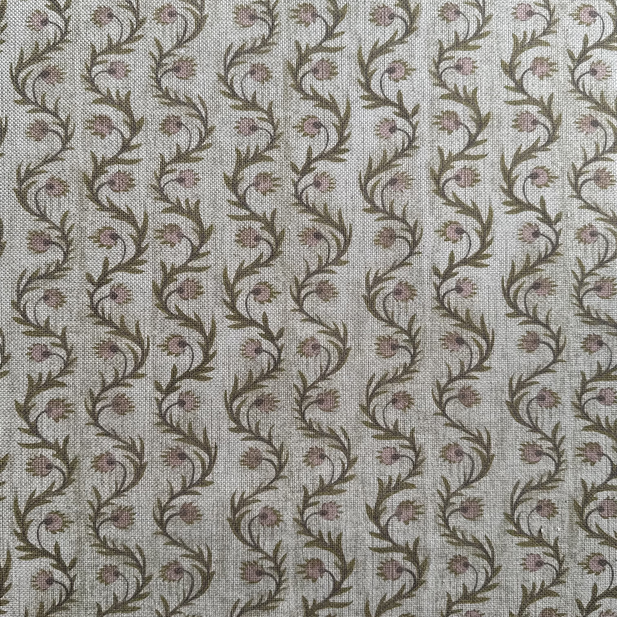 Rubia features cascading, hand painted wiggles that flow rhythmically down the fabric adorned with delicate flowers and leaves. Ideal for adding soft pattern.