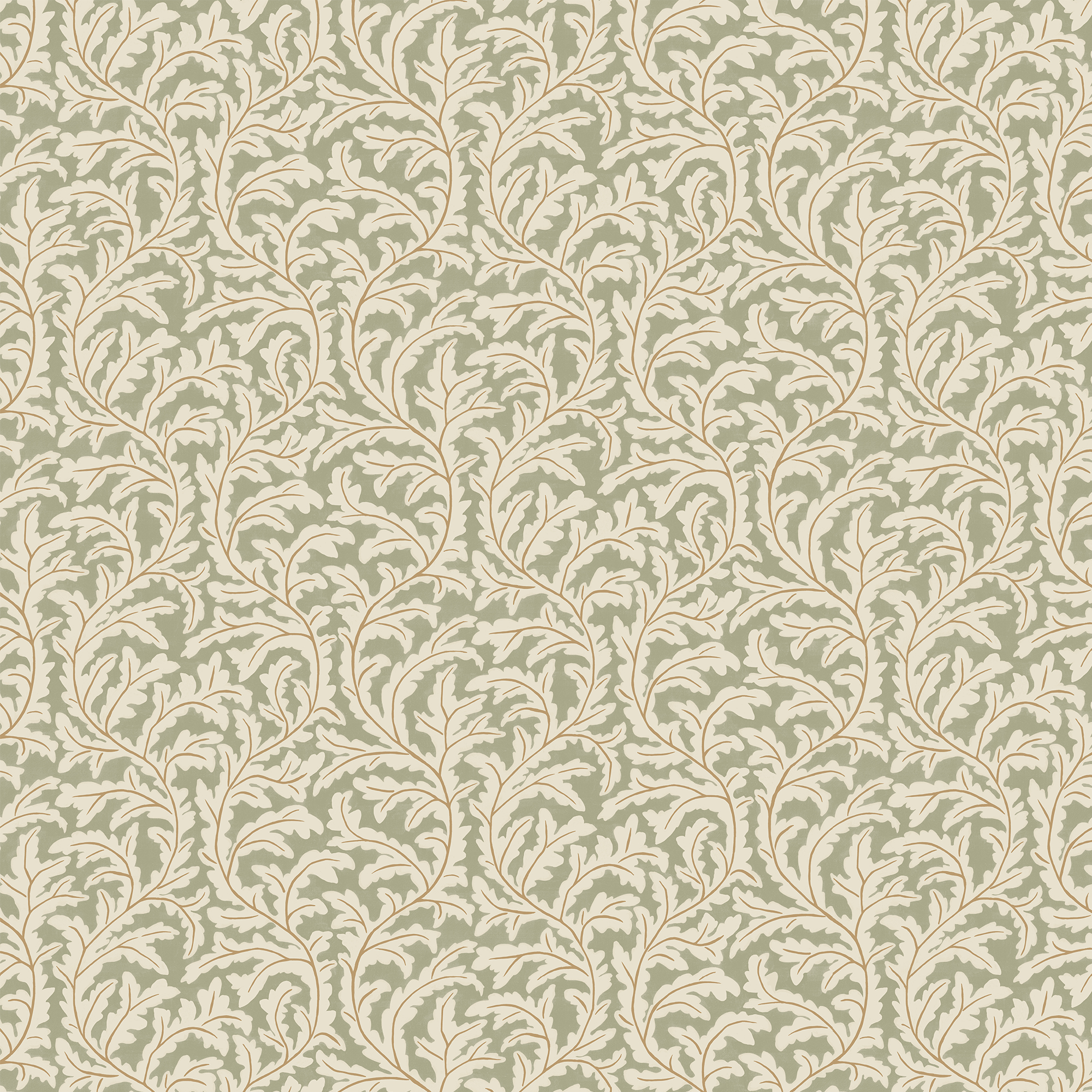 Frond Ogee mimics the shape of an oak leaf and forms an ogee shape. This useful design comes in a wallpaper and a fabric. It is a subtle design that can sit along a very busy print. There is a soft texture within the design that shows the brush strokes used to paint this design.