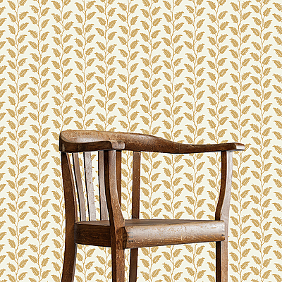 A traditional stripe design with a delicate hand-painted leaf motif. Arranged in columns with a trailing wave effect to give a contemporary twist.