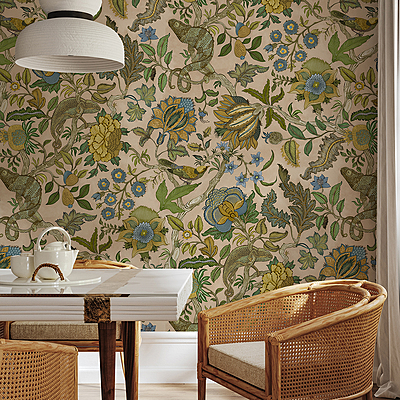 Chameleon Trail Wallpaper - Plaster Pink, Ochre and Blue