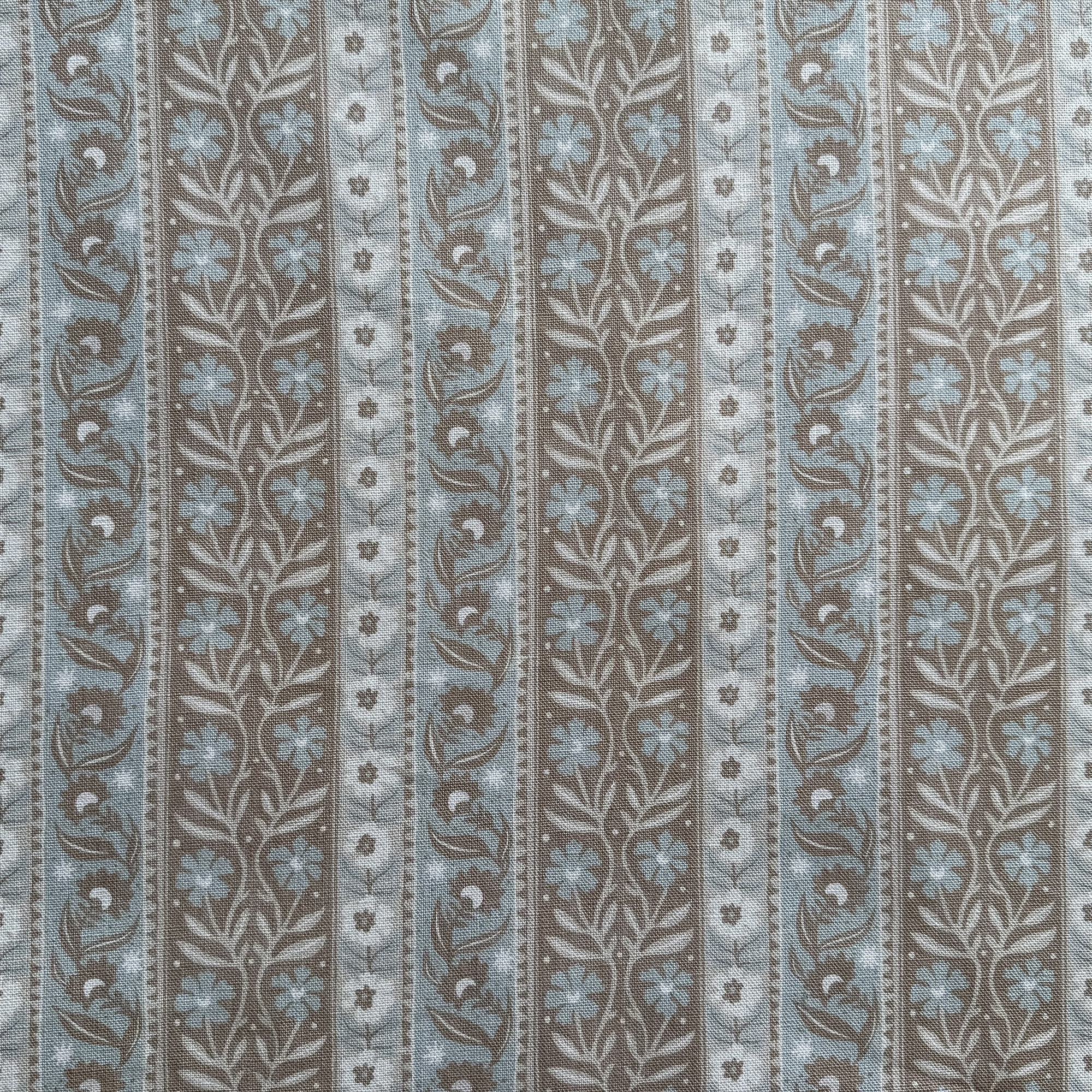 A take on the classic stripe. The hand painted floral design wriggles vertically down the fabric. Made of four colours with soft geometric details, a really versatile design.