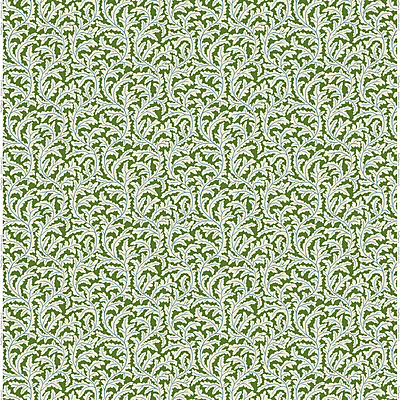 Frond Ogee Heavy Linen Fabric - Green and Blue