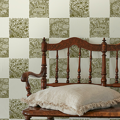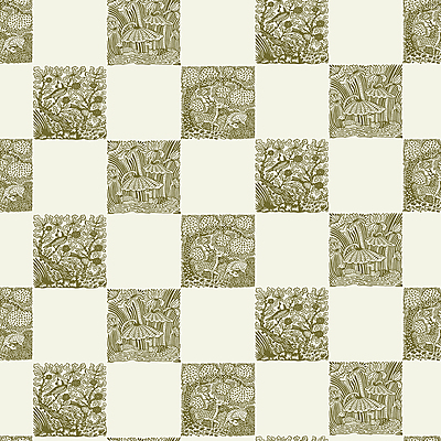 A playful whimsical design, each square contains a woodland creature. This design was hand drawn and repeated to create a check motif.