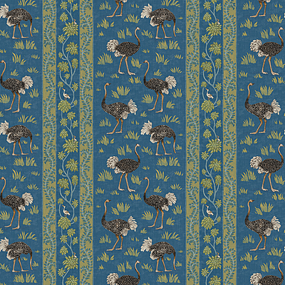 This wonderfully charming print depicts ostrich birds standing amongst grass. Ostrich Stripe has a lovely cross hatched texture and is coloured subtly.