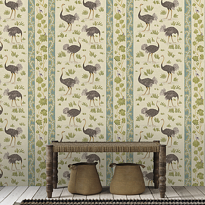 Ostrich Stripe Wallpaper - Cream and Green