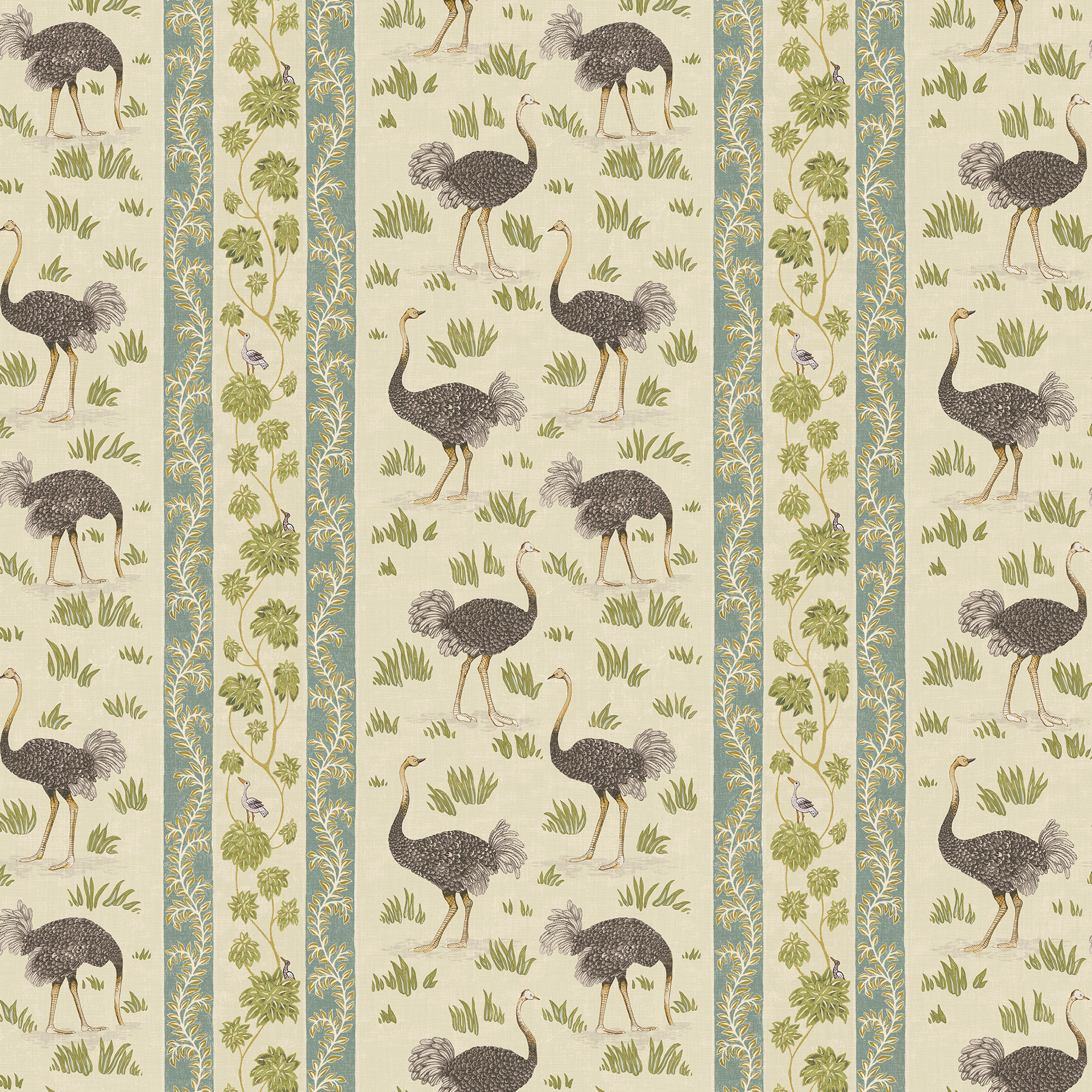 This wonderfully charming print depicts ostrich birds standing amongst grass. Ostrich Stripe has a lovely cross hatched texture and is coloured subtly.