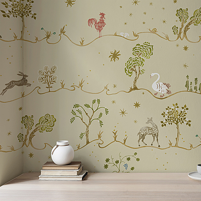 This design is based around an embroidered table cloth made by Josephine's Great Grandma. A naive and playful design hand painted and repeated by Josephine in her studio.