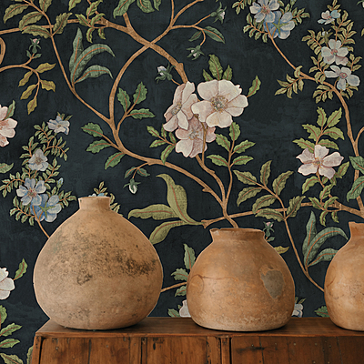 Flory - Navy - Wallpaper
