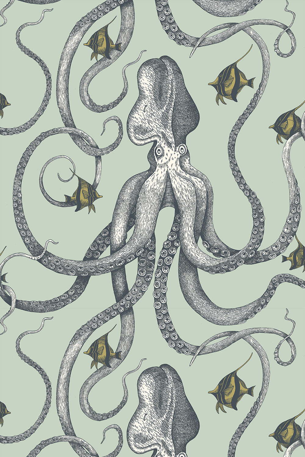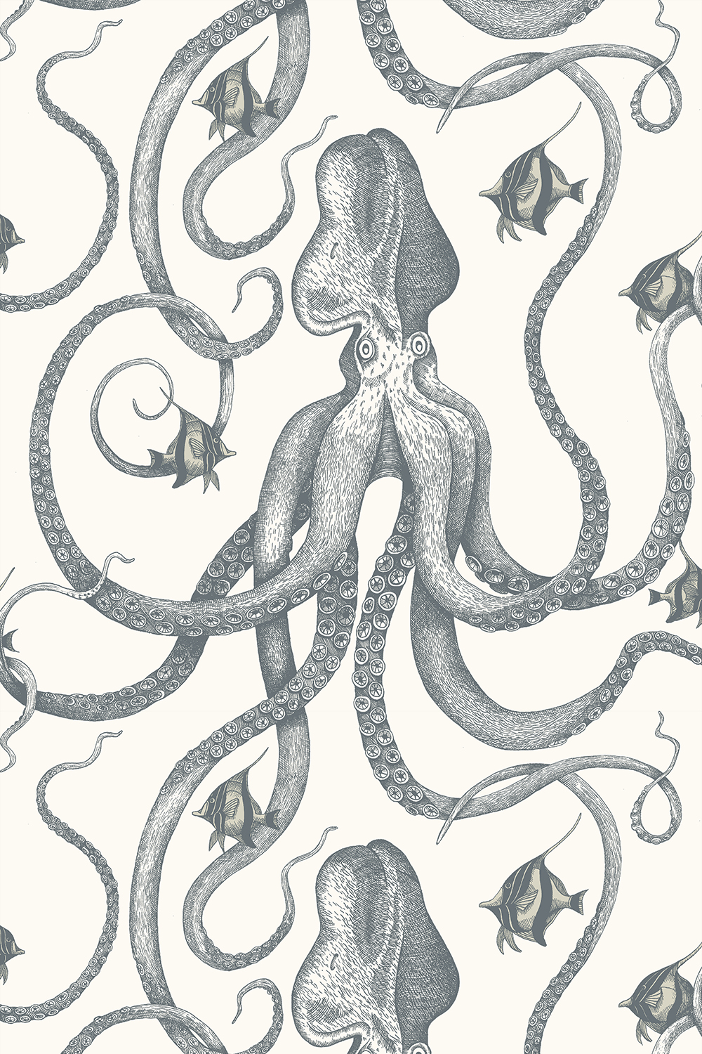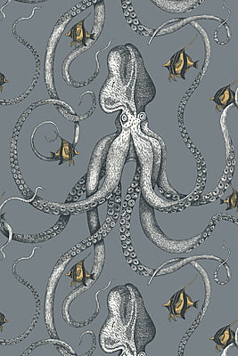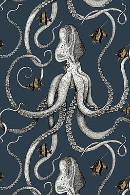 This wallpaper has an unapologetically eye catching design. This eight limbed creature will bring any room to life. Hand drawn with a fine line and meticulously repeated