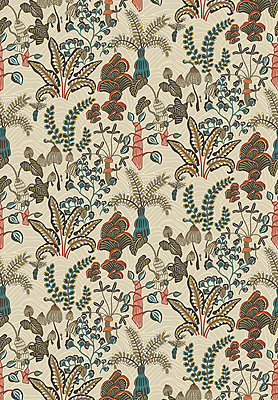 Inspired by a local woodland. Ferns unfold at your feet and mushrooms spill out of tree stumps creating a carpet of interest. Each element was captured, and hand painted.