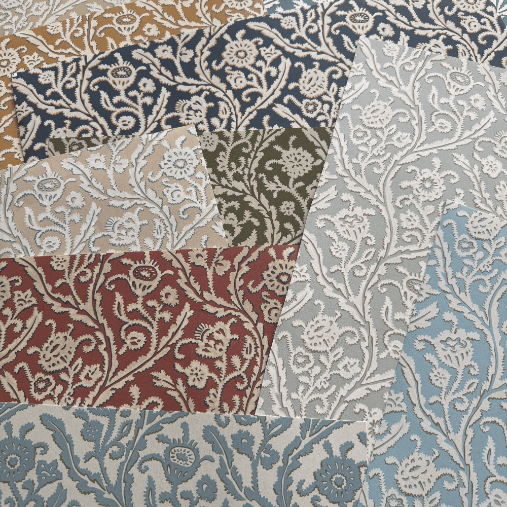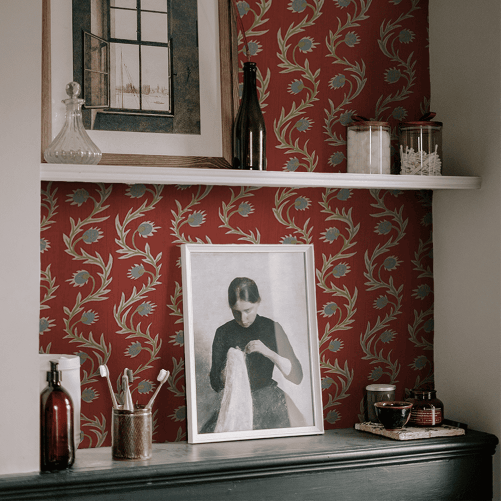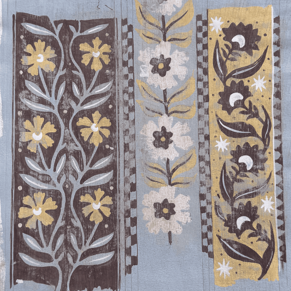 Alma is a celebration of painted surface, folk memory, and the beauty of imperfection. Each design is rooted in handwork, whether painted onto paper or wood, sanded back, redrawn, or re-layered. The collection embraces wear, texture, and narrative, allowing wallpapers to feel as though they belong to a space rather than simply decorate it. Alma is about warmth, character, and longevity—designs made to live with, not just look at.