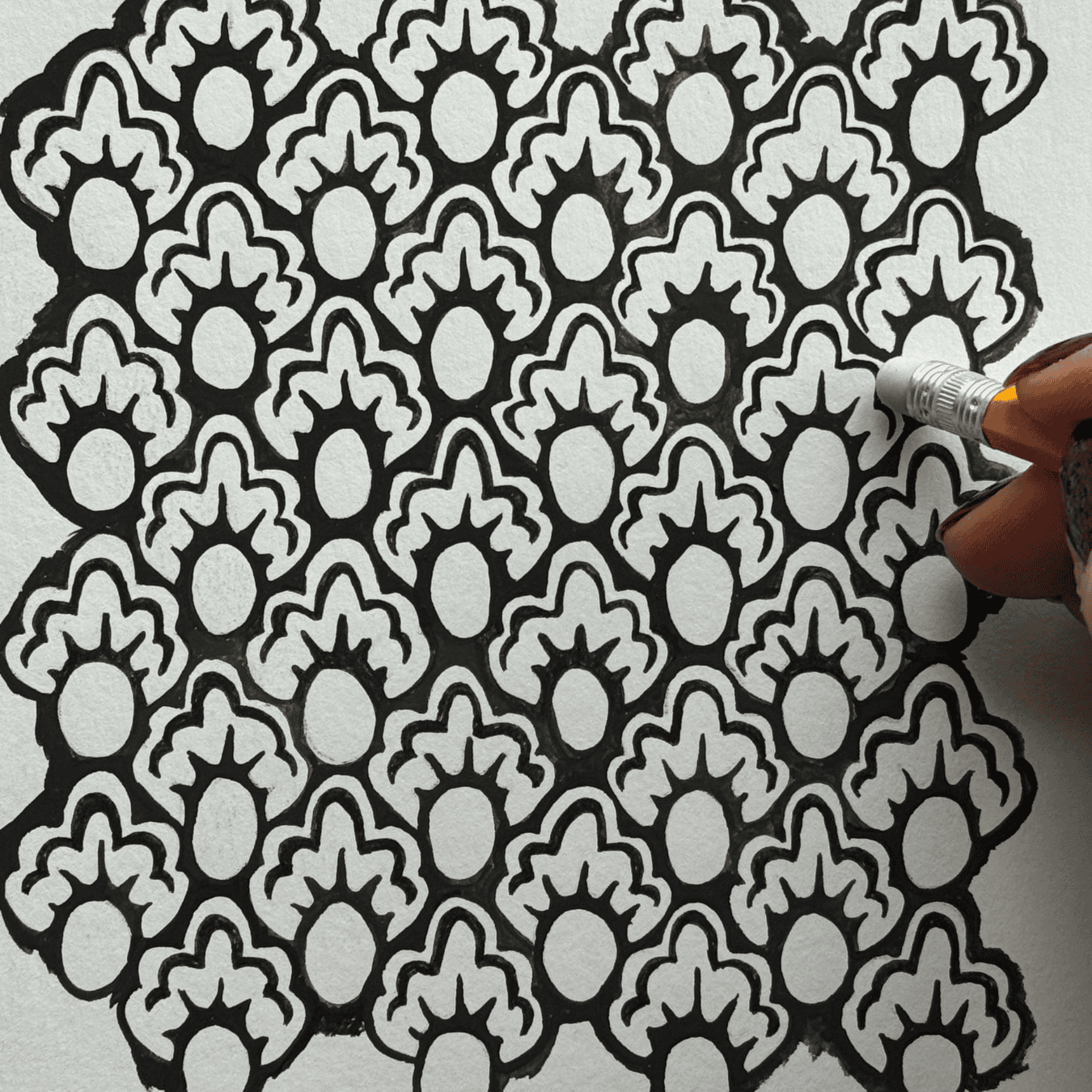Tiddle takes its direction from the visual language of Pre-Columbian artwork, exploring a softer and more organic expression. While early surface design is often associated with geometry, many historic vessels reveal fluid markings reminiscent of coral formations and botanical growth, it shapes that seem to spread instinctively across the surface rather than adhere to strict symmetry.