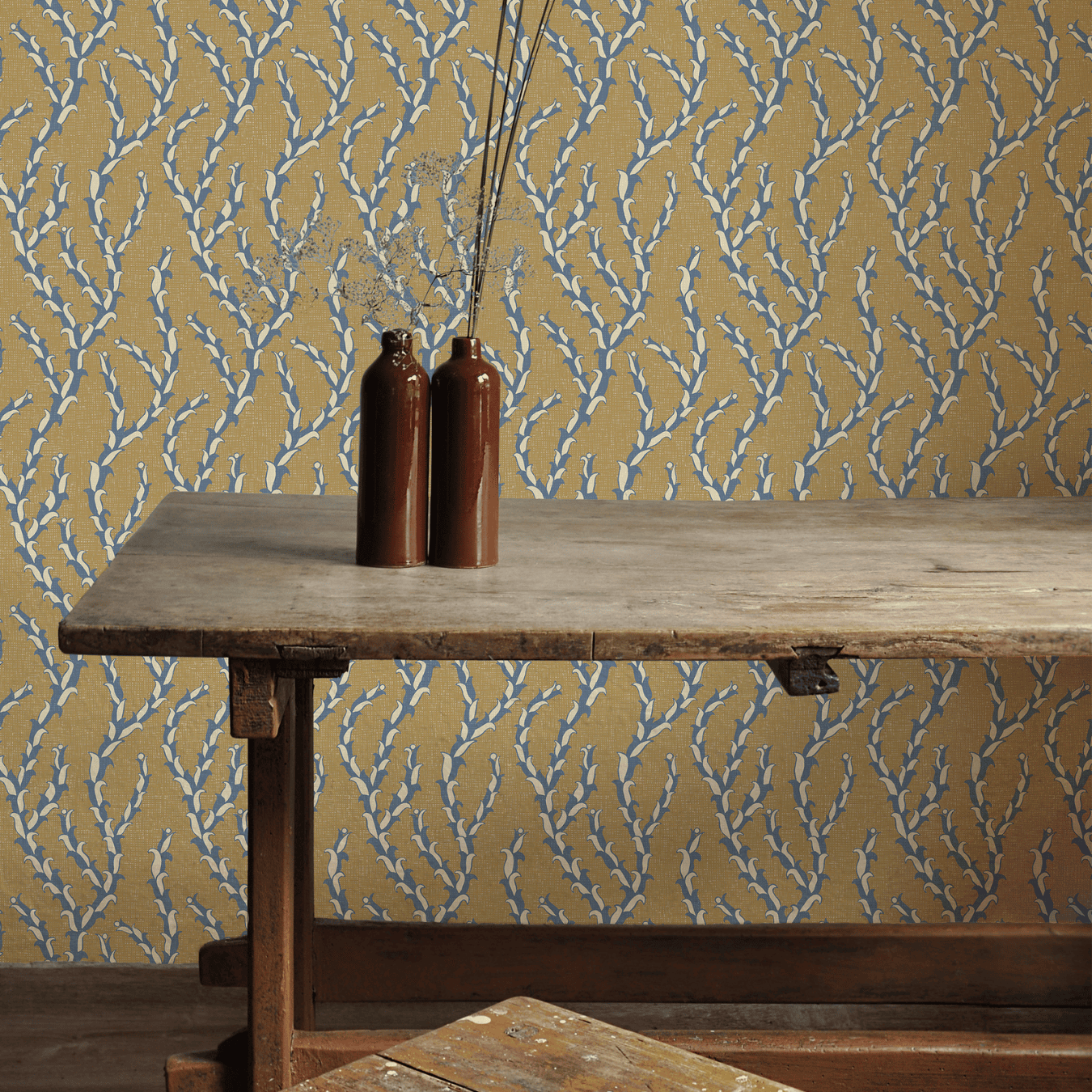 The design embraces this natural movement through gently irregular forms that suggest underwater life and unfurling plant structures. Guided by the immediacy of hand-drawn marks, Tiddle celebrates pattern that feels intuitive rather than engineered, bringing a quiet vitality that is relaxed, textural, and subtly connected to the rhythms of the natural world.