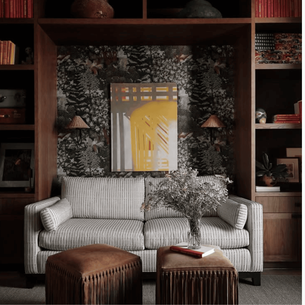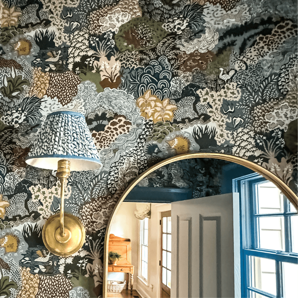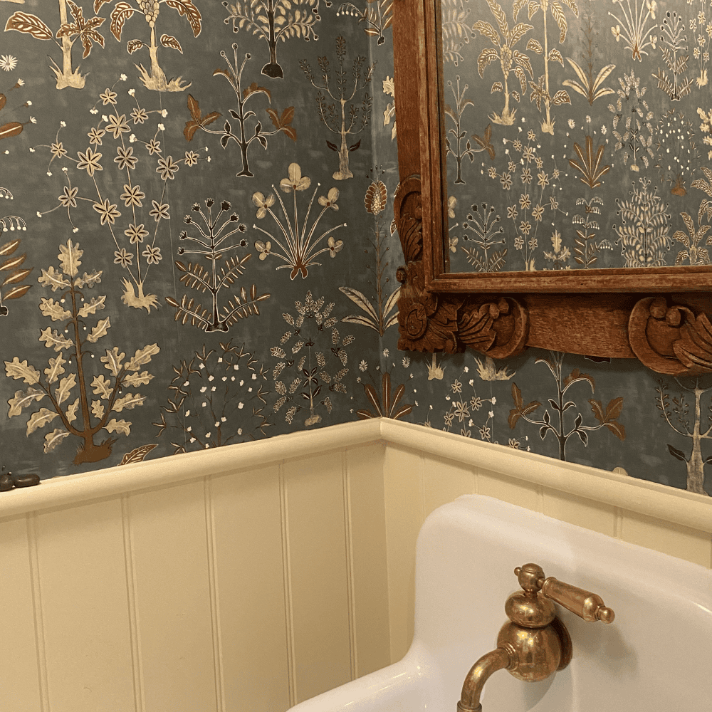 Cynthia was my first fully realised floral wallpaper. Named after my husband’s late great-aunt, who frequently encouraged me to design florals, the composition came intuitively but was refined through repeated painting. The design was built slowly by layering paint, sanding back areas, and repainting to create depth and texture. Fine hand-drawn lines define the shapes, while the negative space was carefully considered to allow the design to breathe. Floral forms were inspired by Briggs & Co embroidery transfers, reinterpreted through hand painting.
